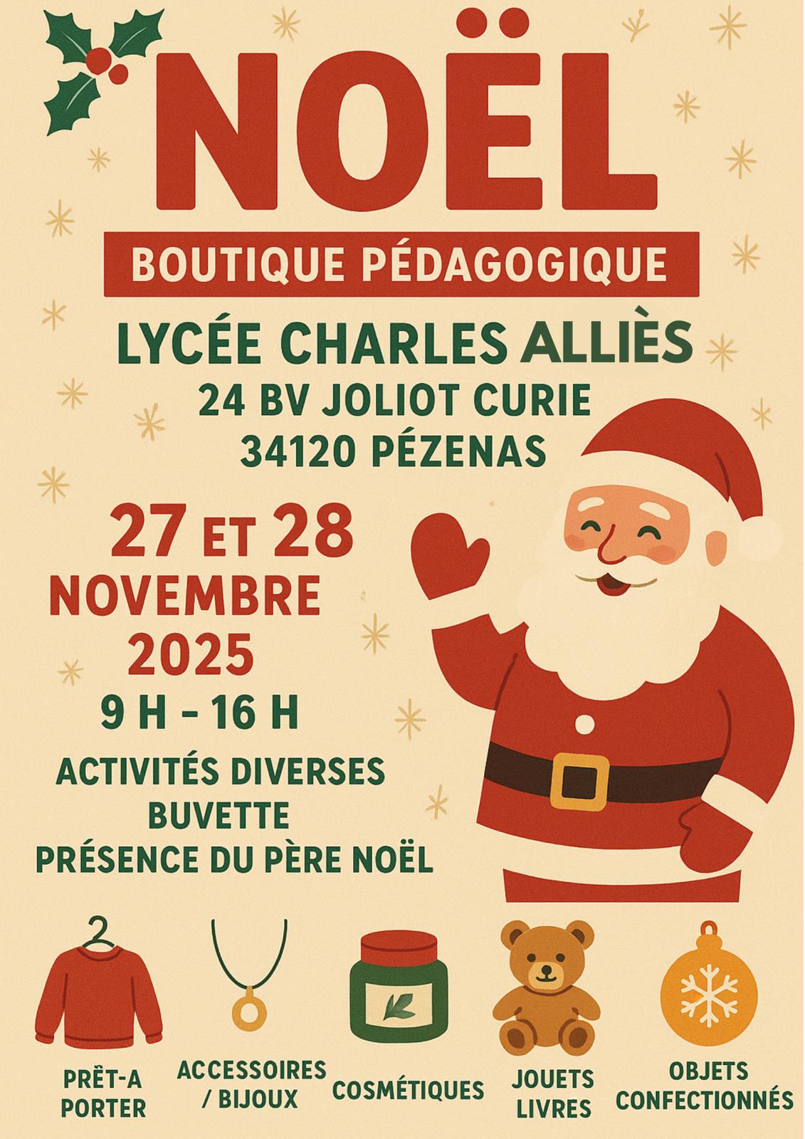Nous avons le plaisir de vous inviter à découvrir notre Marché de Noël, organisé au sein de la boutique pédagogique du lycée, les 27 et 28 novembre de 9h à 16h.